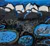 Signed lower right, mixed media on board