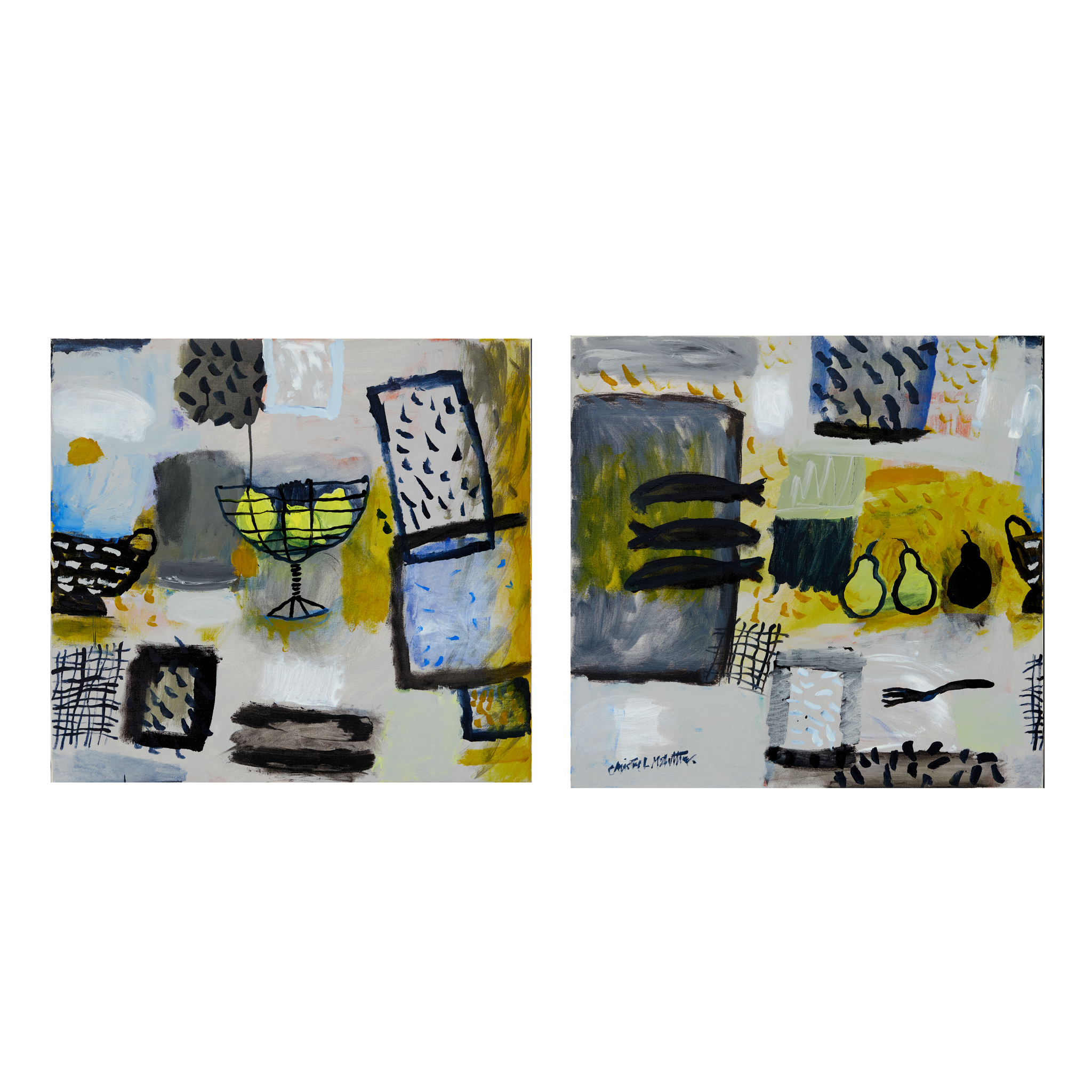 Signed lower left of left-hand canvas, oil on canvas (2)