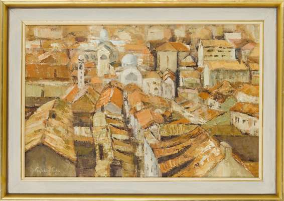 Signed lower left, titled to an exhibition label verso, oil on canvas