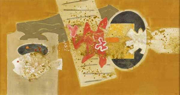 COMPOSITION WITH FISH ON A GOLDEN BACKGROUND