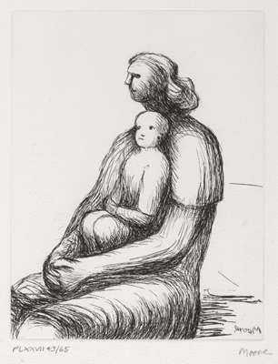 Signed and numbered in pencil, etching and aquatint and roulette, from Mother and Child portfolio, edition of 65, with 15 H.C.'s, number 43/65. Printed by James Collyer and John Crossley, London 1983-1986, published by Raymond Spencer Company Ltd for the Henry Moore Foundation.