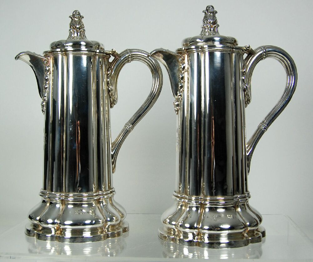 A pair of silver plated communion flagons