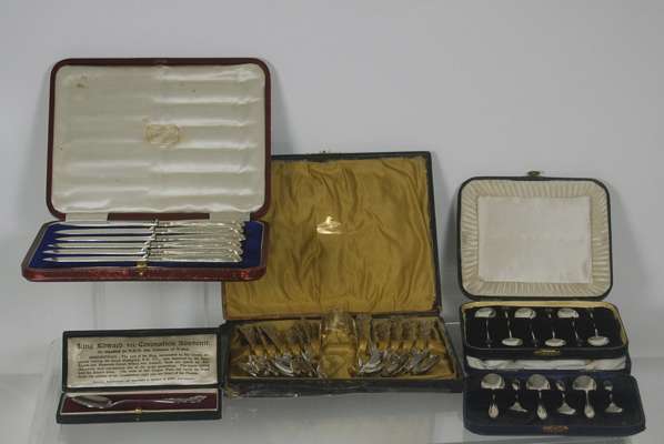 A group of cased flatware