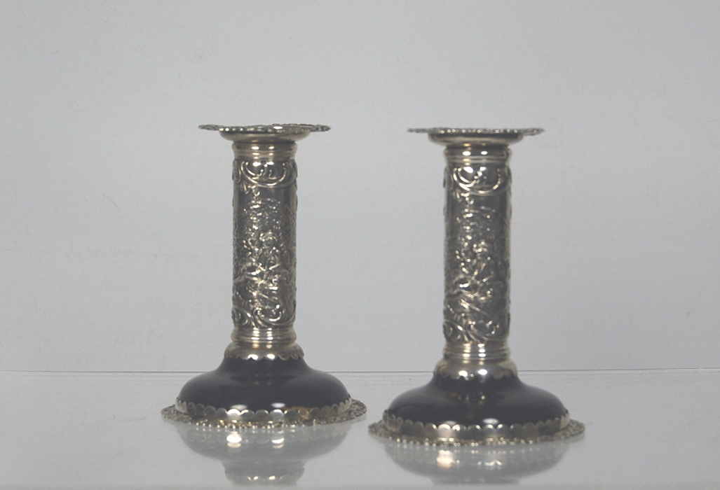 A pair of late Victorian tortoiseshell desk candlesticks By William Coymns London 1899