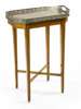 with pierced silver plated gallery and central foliate and garland musical trophy within an interlaced leafy border, the associated later stand with square tapered legs joined by an X-form stretcher