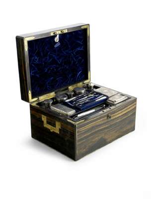 A good Victorian period coromandel and brass mounted lady's dressing box By W. Leuchars of London