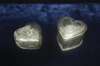 with London import marks for 1901 and retailed by MacKay and Chisholm Edinburgh, of heart shaped outline with finely embossed fruiting flowerhead and scroll borders, the hinged lid embossed with a classical scene of a maiden on donkey being led towards a castle; together with another continental heart shaped trinket box with import marks for London 1893, the body and hinged cover embossed with classical scenes of putti working in a garden (2)