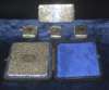 Birmingham 1883 (maker's mark indistinct), of shaped rectangular outline with all over foliate engraved design and shield shaped cartouches, in original fitted case; a curved rectangular calling card case with foliate scroll design Birmingham 1913; together with three vesta cases, all with engraved detail (5)