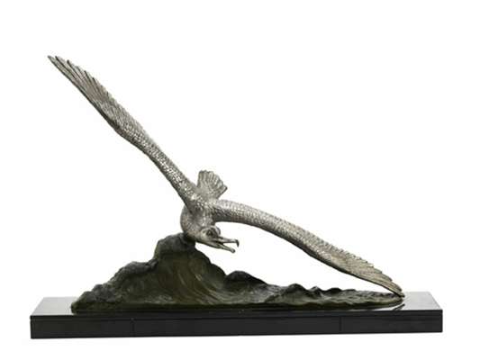 of a swooping albatross on a naturalistic wavy base, the whole on a black marble plinth, signed 'C. Ruchot'