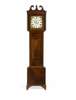 the 12 inch painted dial with a subsidiary second dial, minute register, twin winding holes and marked J & J Thistle, Williton, with a twin train 8 day movement, the swan-neck pediment above reeded corner columns and a canted strong case with shaped bracket feet