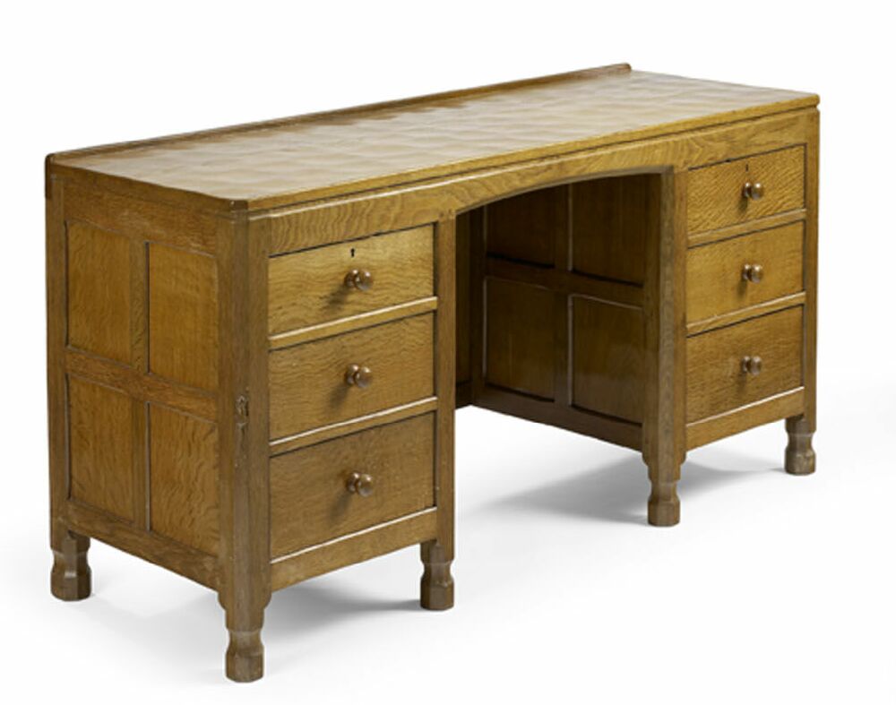 A Robert 'Mouseman' Thompson oak kneehole dressing table, circa 1950