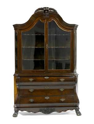 A late 18th century Dutch walnut bombe display cabinet