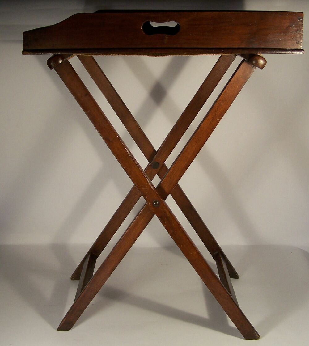 folding stand associated, the three quarter galleried tray with pierced carrying handles