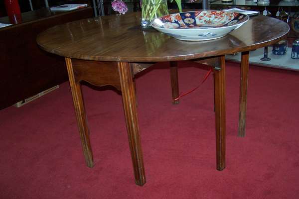 the oval top above shaped frieze and moulded and chamfered square sections legs with gate action