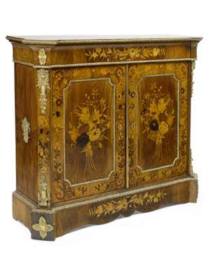 A Dutch 19th century burr walnut, kingwood and marquetry side cabinet