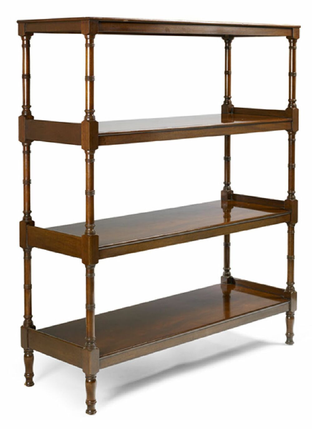 comprising four rectangular tiers between ring turned supports, on baluster turned legs