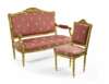 A French Louis XVI style carved giltwood and upholstered canape and two chairs, 19th century