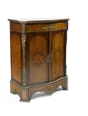 A French late 19th century kingwood and rosewood serpentine side cabinet