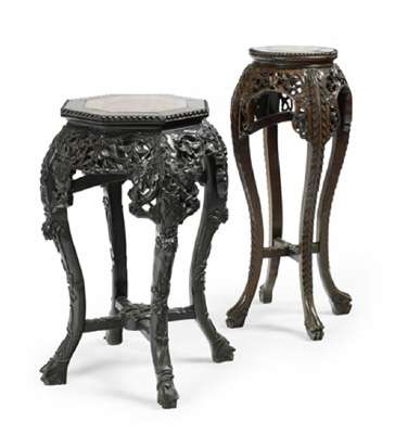 A late 19th century carved Chinese hardwood jardiniere ADDITIONAL STAND IN THIS LOT