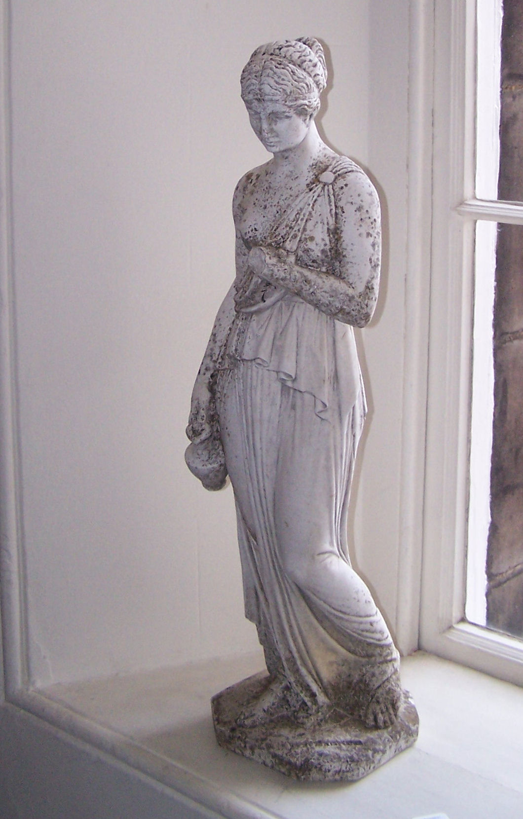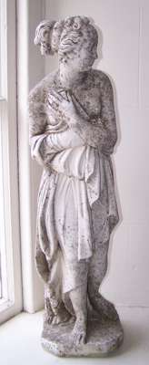 each semi-naked clasping a drape; and another of a goddess holding a water pitcher (one hand missing), largest 82cm high (3)