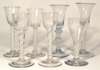 the tallest with bell bowl, double knopped double twist stem, 16.5cm high; two similar double twist, 15cm high and 14.5cm high; and another four (7)