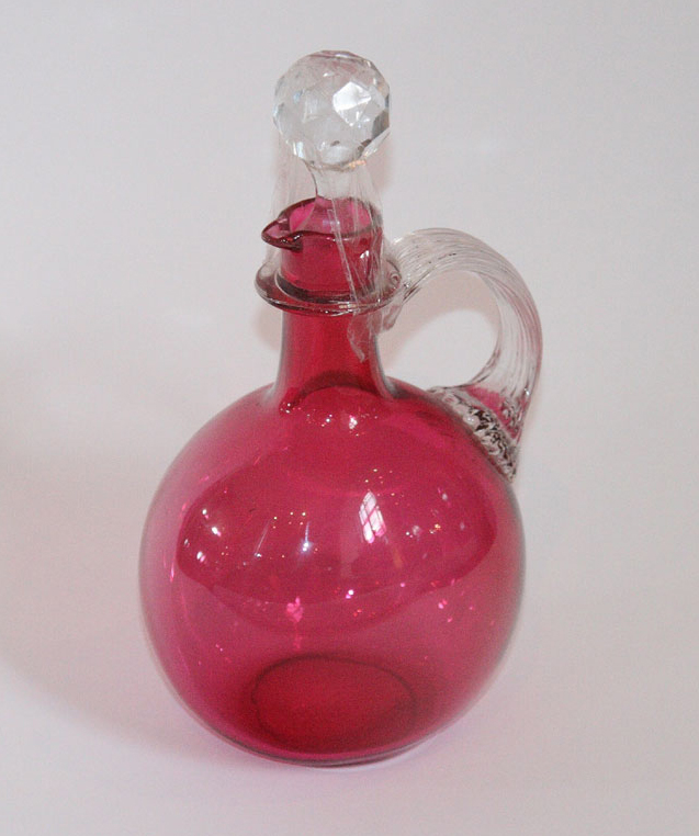 A collection of cranberry glass