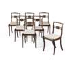SET OF SEVEN REGENCY ROSEWOOD GRAIN PAINTED AND BRASS MOUNTED DINING CHAIRS