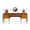 the gallery back centred by a convex mirror and flanked by compartments with lift off covers with ivory finials and swing outdoors, above a breakfront top over a pair of short frieze drawers flanked by a deep cupboard and a drawer fitted as a cellarette, raised on square tapered legs with moulded collars