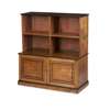 the set-back rectangular top with an ebonised moulded edge over four open compartments with brass handles to the sides, above a pair of moulded cupboard doors on a plinth base