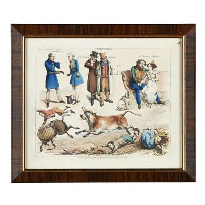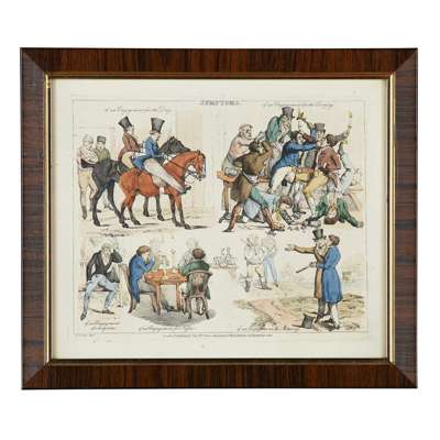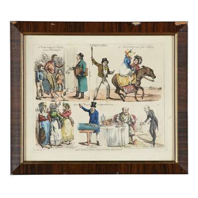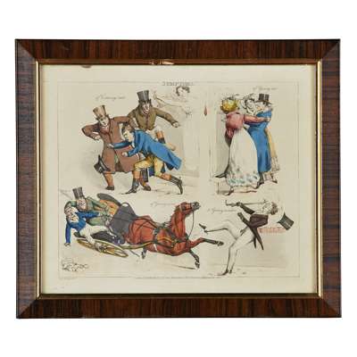 hand-coloured soft ground etchings, published by Thomas McLean, 26 Haymarket, 1824, in faux coromandel frames (6)