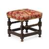 the square padded seat raised on block and turned legs joined by stretchers and ending on flattened bun feet