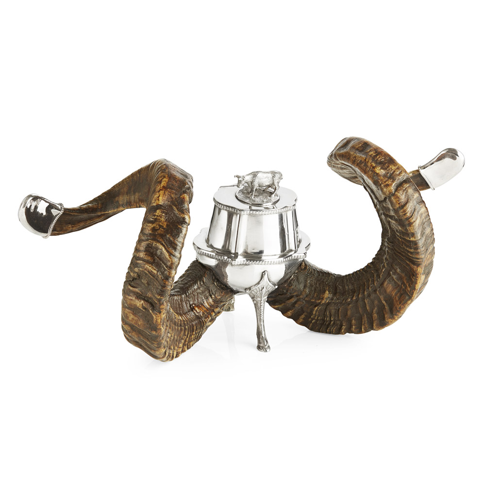 SILVER-PLATE MOUNTED RAM'S HORN SNUFF MULL