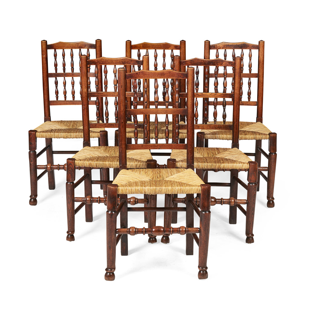 SET OF SIX GEORGE III LANCASHIRE ASH DINING CHAIRS