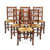each with spindle filled backs above later rushed seats on turned legs with turned and knopped stretchers (6)