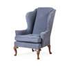 in the George II style, with a loose cushion seat and scroll arms, raised on cabriole legs ending in pad feet, the rear leg stamped 'HOWARD & SONS LTD BERNERS ST' and model number 13008/685, in blue upholstery