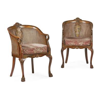 PAIR OF EDWARDIAN CHINOISERIE BERGERES