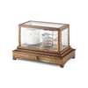of typical form, with a bevelled glass lift-off case, brass instruments and ink vial and inscribed plaque, above a single chart drawer