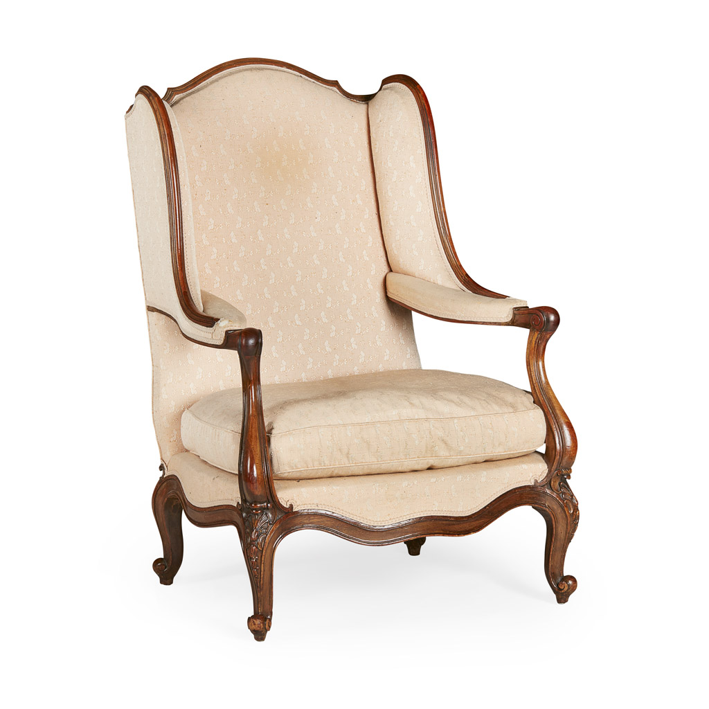 FRENCH WALNUT FRAMED FAUTEUIL A OREILLE
