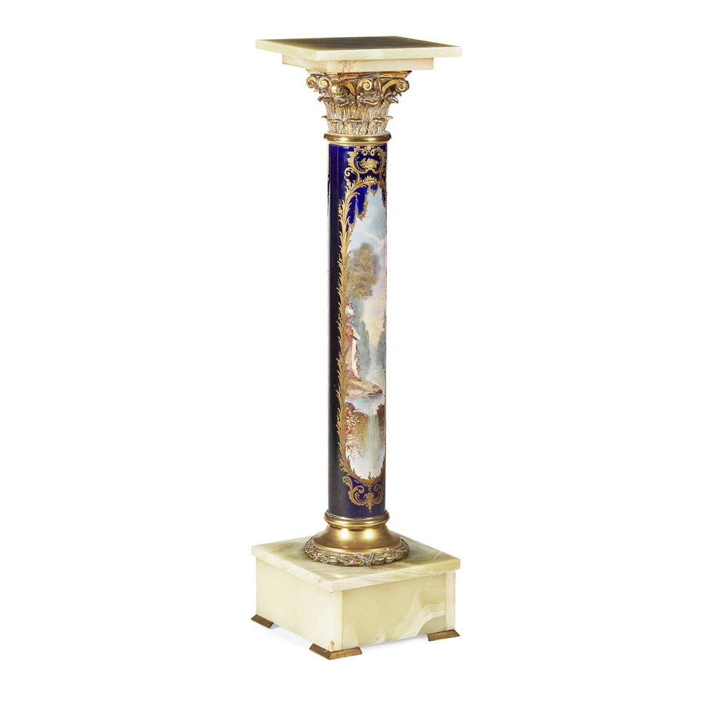FRENCH SEVRES STYLE PORCELAIN, GILT METAL AND ONYX PEDESTAL