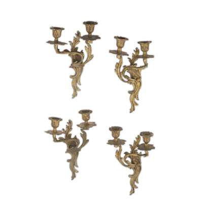SET OF FOUR LOUIS XV STYLE GILT BRASS WALL SCONCES