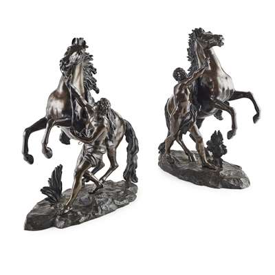 PAIR OF FRENCH BRONZE MARLY HORSE FIGURE GROUPS