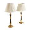PAIR OF RESTAURATION STYLE GILT AND PATINATED BRONZE LAMPS