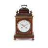 the 4 1/2in. enamelled Arabic numeral dial with foliate swags, in a caddy top case with urn finials and foliate motifs, on a plinth base with laurel band mounts, raised on toupie feet, the backplate stamped 'Ad Mougin, Ch. Vcne Paris 47592', the twin train movement striking a gong