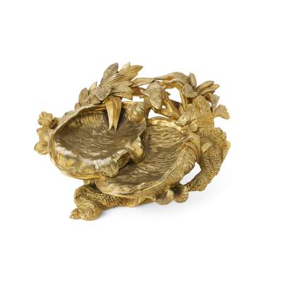 modelled as two oyster shells mounted with fish, sea snail, seaweed and reeds