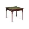 the rectangular foldover top with a moulded edge, opening to a green baize line playing surface, above a plain frieze, raised on straight chamfered legs with C scroll carved brackets, one hinge stamped 'H. Tibats'