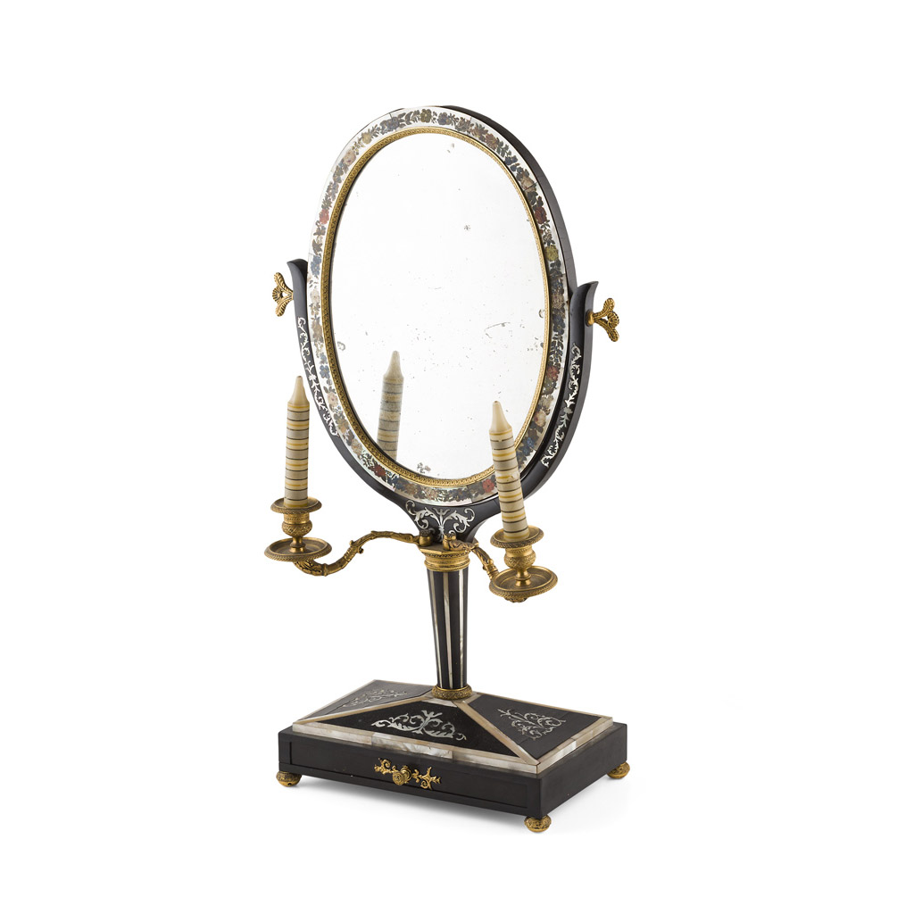 CONTINENTAL EBONY AND MOTHER-OF-PEARL DRESSING MIRROR