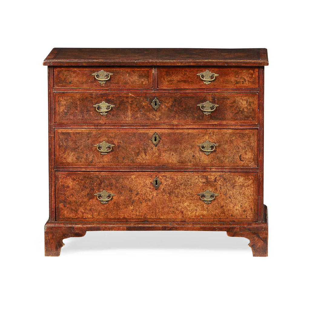 GEORGE I WALNUT CROSSBANDED CHEST OF DRAWERS
