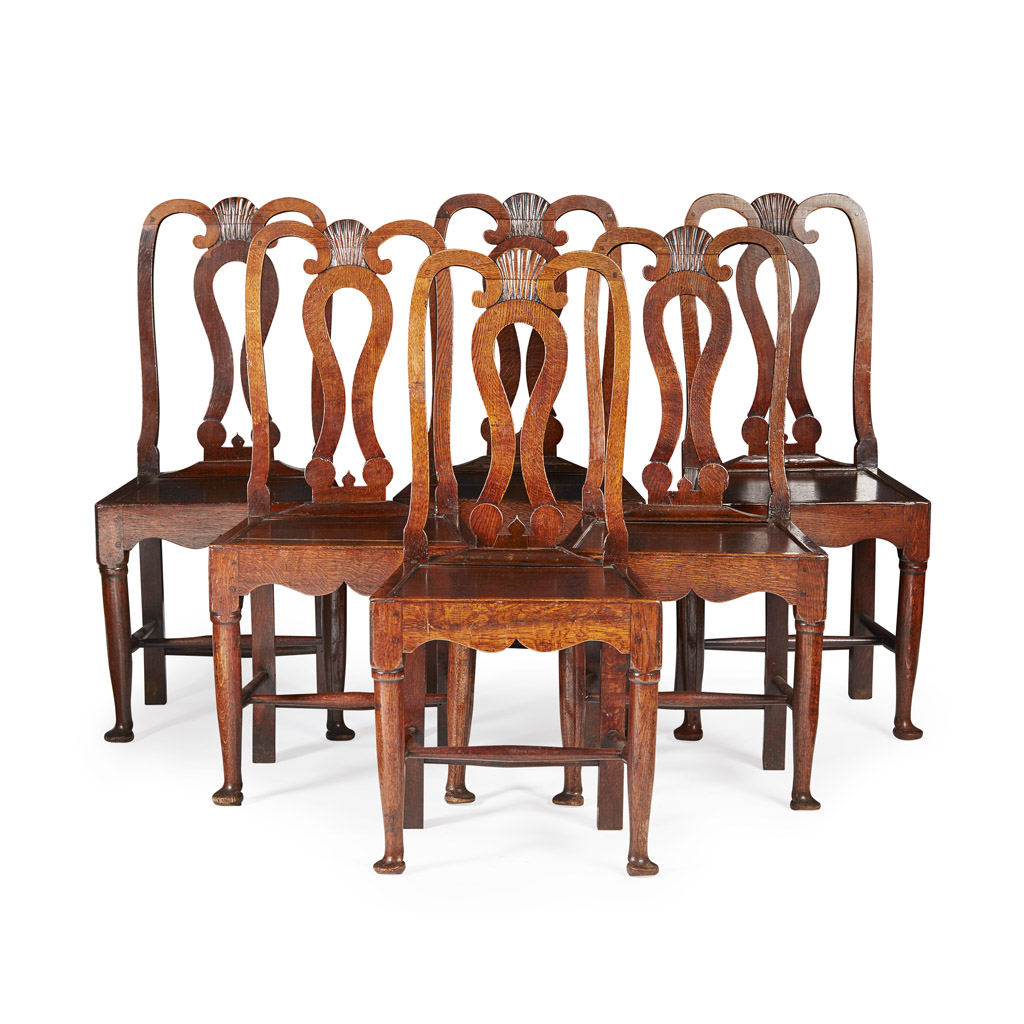 SET OF SIX GEORGE III OAK DINING CHAIRS