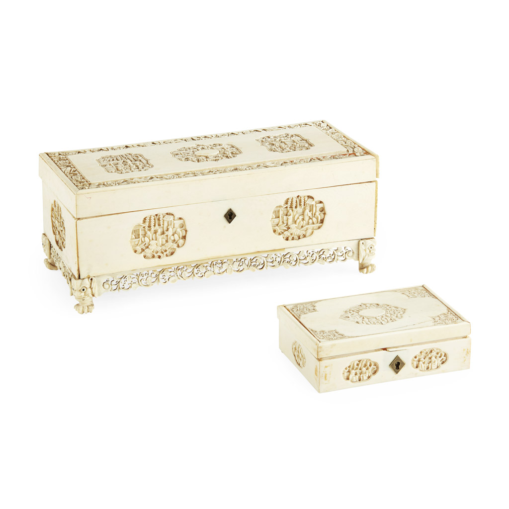 both of rectangular form, carved with figural cartouches, floral motifs and borders (2)