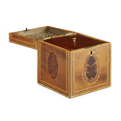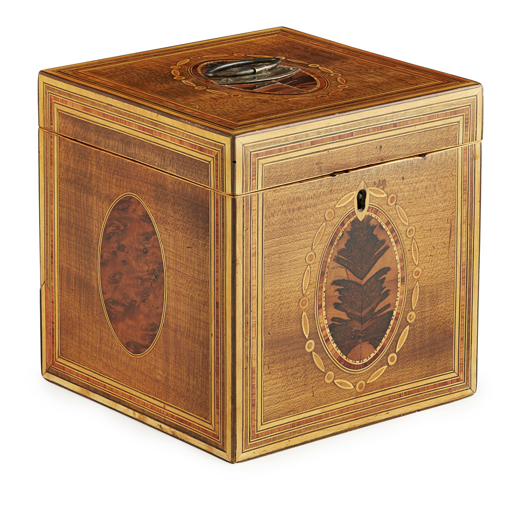 GEORGE III SATINWOOD AND BURRWOOD INLAID TEA CADDY